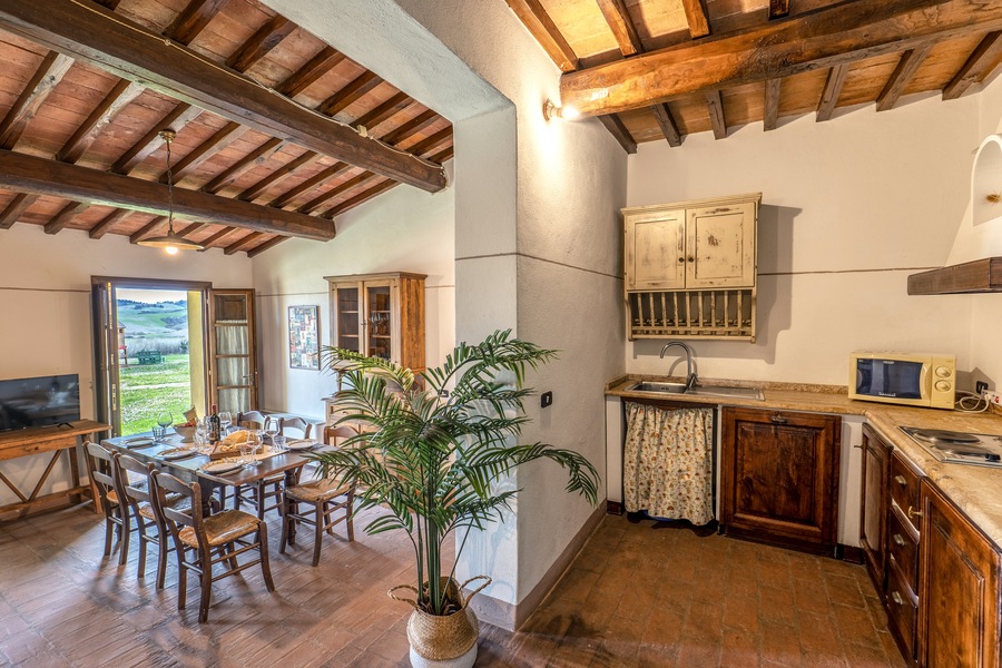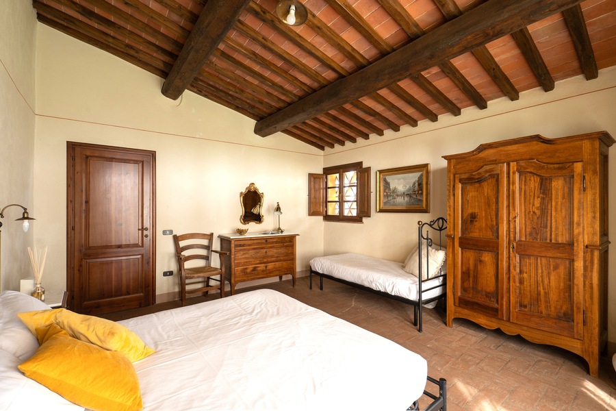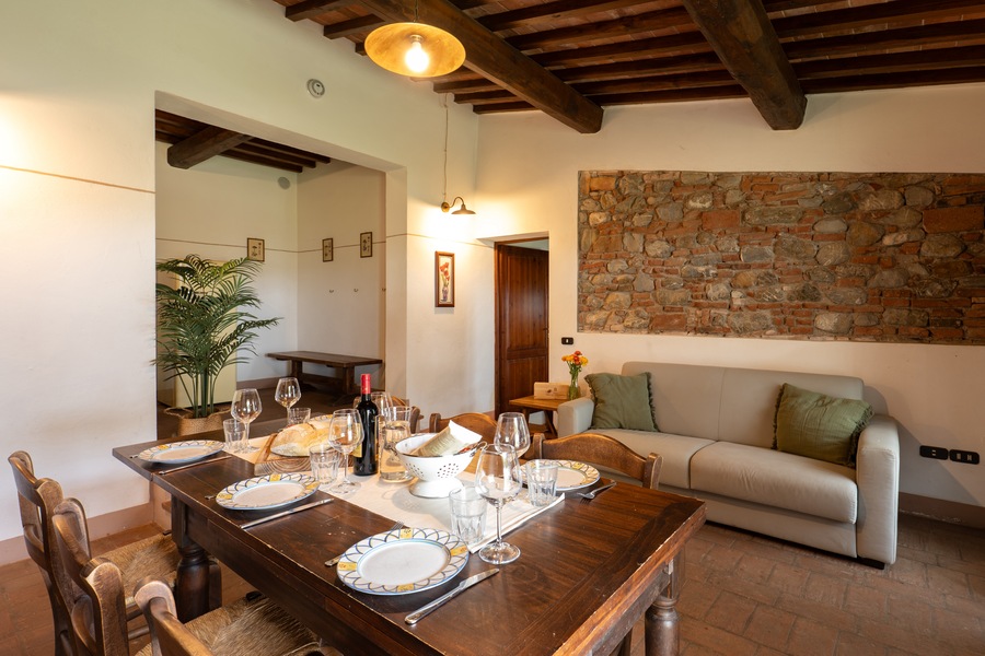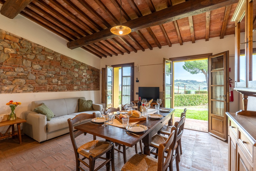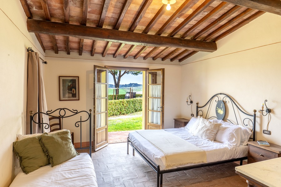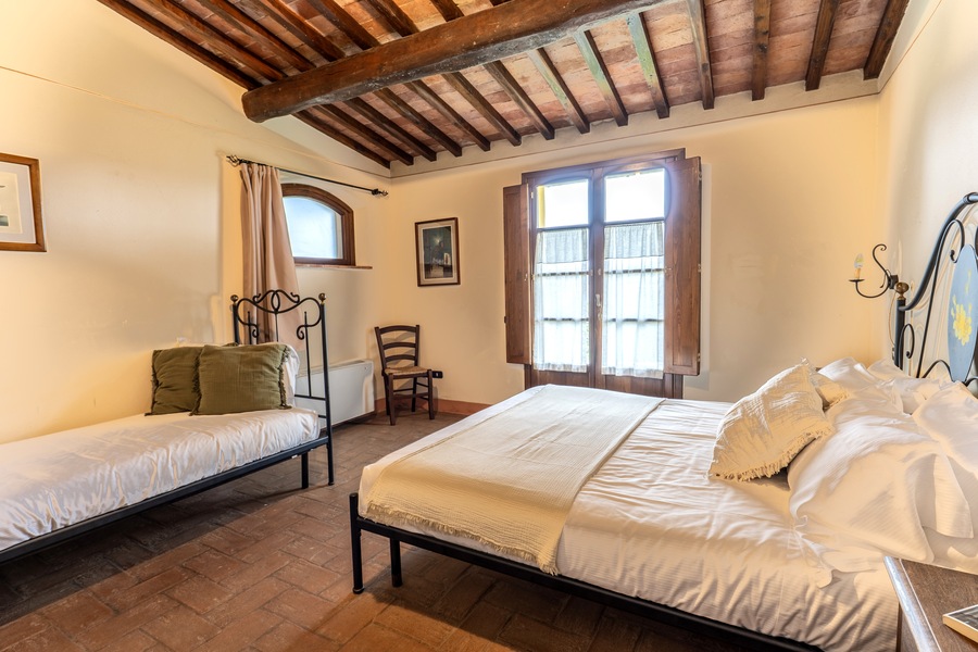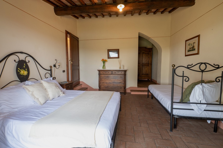 Uno degli appartamenti più belli dell’antico podere di Casa d’Era, Boheme è ubicato interamente a piano terra, e la superficie è di 90 mq. Le due grandi camere sono una con letto matrimoniale e letto singolo, e l’altra con 3 letti singoli, ognuna delle quali con bagno interno completo di doccia, lavandino e bidet. Gli interni sono un mix perfetto di passato e presente, grazie ad arredamenti rustici con pavimenti in cotto, che si fondono con le comodità di Tv satellitare, riscaldamento a gas autonomo, aria condizionata e connessione internet gratuita. La cucina è aperta sul soggiorno e comprende piano cottura con 4 piastre elettriche, frigorifero, lavastoviglie e macchina da caffè americano. Nel salotto è presente anche un divano letto che consente di ospitare altre 2 persone. A disposizione degli ospiti ampio parcheggio, lavatrice, asciugatrice, area giardino con gazebo privato, tavolo e sedie per pranzare o cenare all’aperto, piscina con ombrelloni e lettini. Insomma soluzione ideale per chiunque volesse regalarsi una vacanza nella campagna toscana all’insegna del relax.