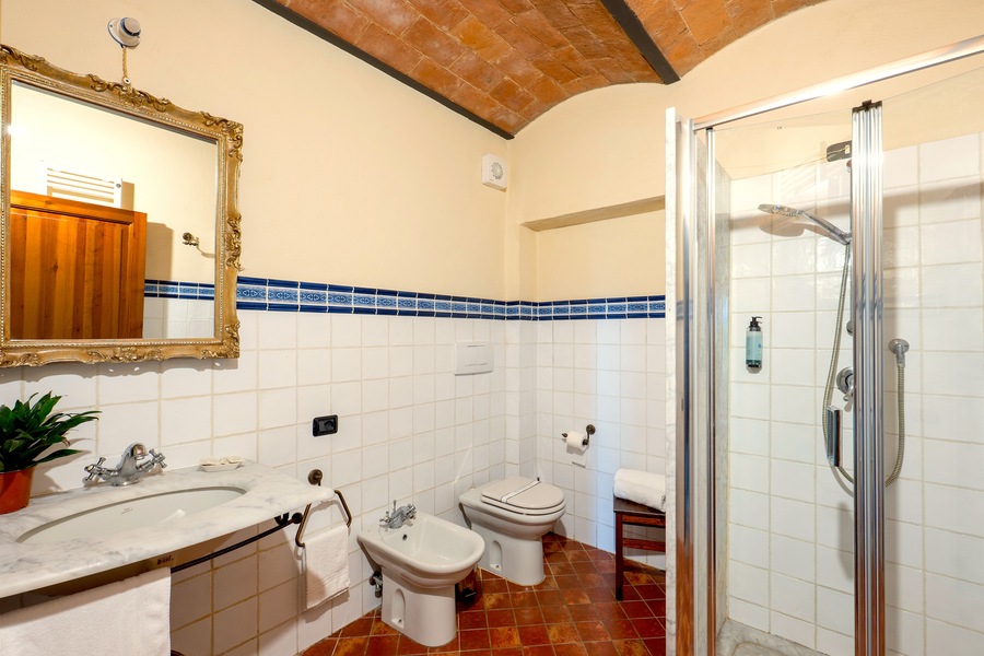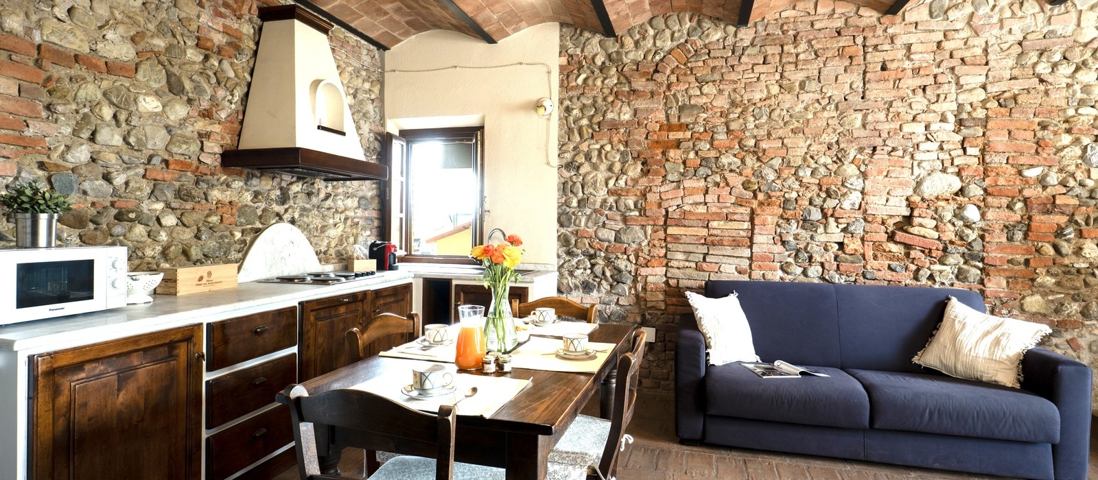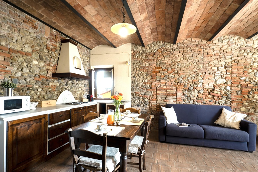 Lo stile rustico, gli arredamenti in stile toscano e i pavimenti in cotto faranno da compagnia per la vostra vacanza all’insegna del relax.